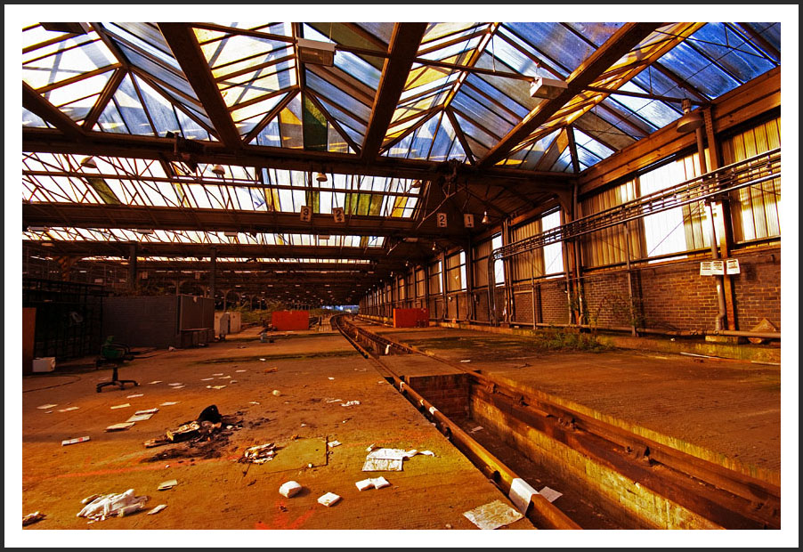 The site has been pretty well stripped out with only really the rail infrastructure left in place but the glass roof and crisp February sun make for some beautiful light. And the fact that the Neds and painters have stayed away is always a double bonus. Access was not much fun, might as well do a strip in the middle of Trafalgar Square, but that's often the way with the better sites.